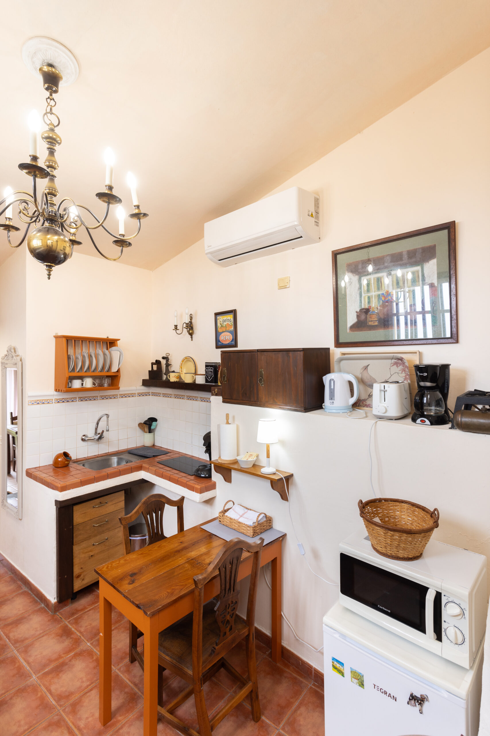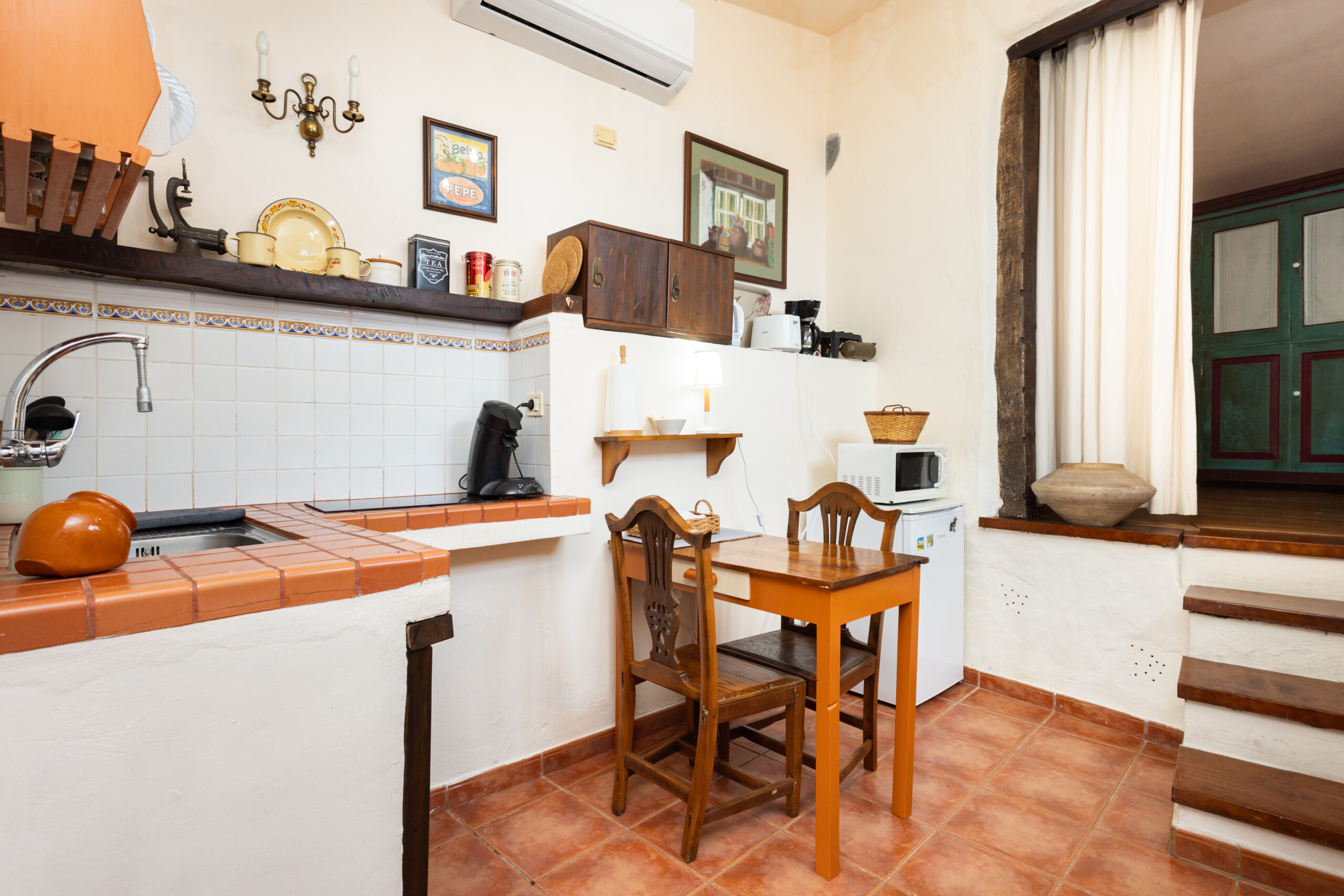 The Casita del Jardín is located next to the main patio of La Gañanía, but has independent access and total privacy. It has a bedroom with a double bed, a full bathroom, and a small equipped kitchen.